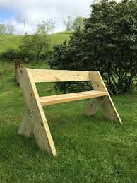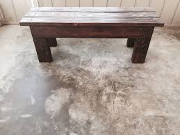 This bench is a gift to my mom and she hadn t picked out a finish at this point. Used a coffee stain and 3 coats of urethane for the finish. The bench is 5 long and stands just over 1 5 off the ground.