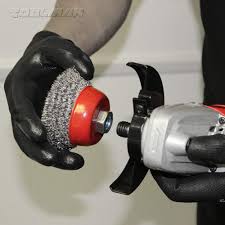 A crimped wire wheel can provide great flexibility on uneven surfaces and fastening a double spiral wire brush to your bench grinder can work great for heavy duty applications.