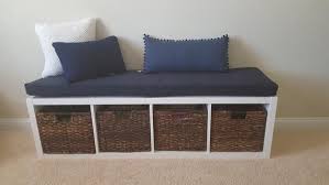 Only 10 left in stock order soon. Knowlife storage bench entryway bench removable cushion shoe bench with 3 drawers and 3 rattan baskets for living room and bedroom white. You will be amazed how much more comfortable your bench will be with this cushion sitting on top of it.