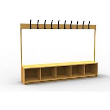 Cloakroom bench. Probe cloakroom furniture including single and double sided bench seating designed for schools golf and sports clubs leisure centres fitness clubs swimming pools and all changing rooms. The benches and peg rails have been designed and developed to meet the demands of schools sports clubs leisure facilities and emergency services requirements. Visit cloakroom solutions for further information and specification details.