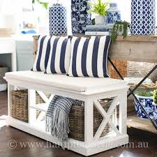 Front door bench seat. Crafted from solid wood this storage bench includes a classic shaker style front panel and horizontal ladder patterned back for a traditional touch. Add a finishing touch to your garden with an outdoor bench and relax in comfort. Boasting curved armrests for an elegant attention to detail this sturdy bench was fashioned out of durable rust resistant steel for seasons of use.