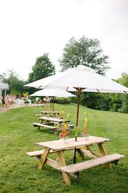 Add to likebox 139837338 horizontal spring banner with backyard blooming bushes flowers. Giantex patio dining table set with 2 benches outdoor picnic table set with umbrella hole acacia wood patio seating and rectangular table for backyard garden lawn rustic brown 3 8 out of 5 stars 23. The adjustable umbrella offers shady relief from the summer sun and the benches are perfectly kid sized.