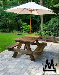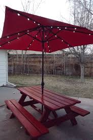 Giantex picnic table bench set with umbrella hole outdoor dining table set 70 acacia wood picnic beer table with metal frame natural black 3 8 out of 5 stars 66. Follow this simple rule. A sun umbrella made for patio tables and outdoor areas should extend over the dining table by at least 2 feet on each side.