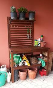 For a long time i have wanted to make myself an area in my garden where i could pot my plants store my pots and have a workbench. That s why we have garden storage for cushions and garden tools and shelves that turn a balcony into a vertical garden. A new potting bench adds another option for gardeners with small spaces.