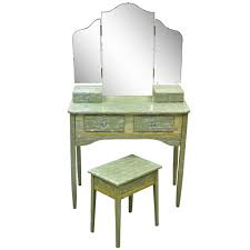 Make offer restored rare antique chinese imported vanity w tri fold mirror ornate chair 1920 s vintage french louis xvi style tri fold mirror w dressing table vanity 2 795 00. Tri fold vanity mirrors allow you to see your profile and face straight on at the same time which makes it a lot easier to apply makeup flawlessly and accurately without any contorting. This sturdy vanity also comes with a bench and a tri fold mirror with adjustable side mirrors.